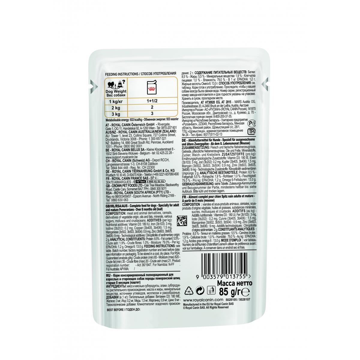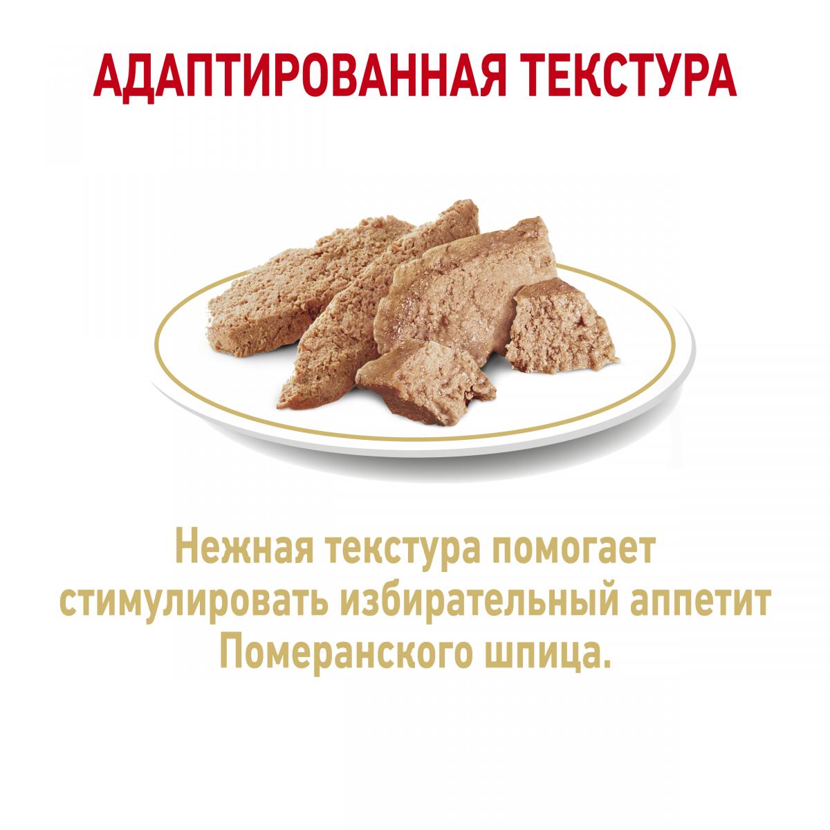 Нежная текстура паштета стимулирует аппетит даже самых привередливых собак породы Померанский шпиц.