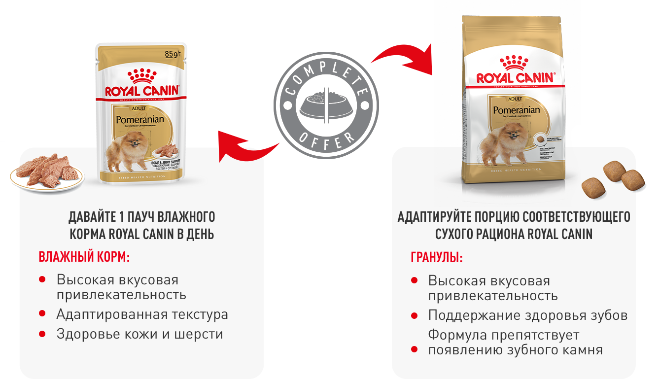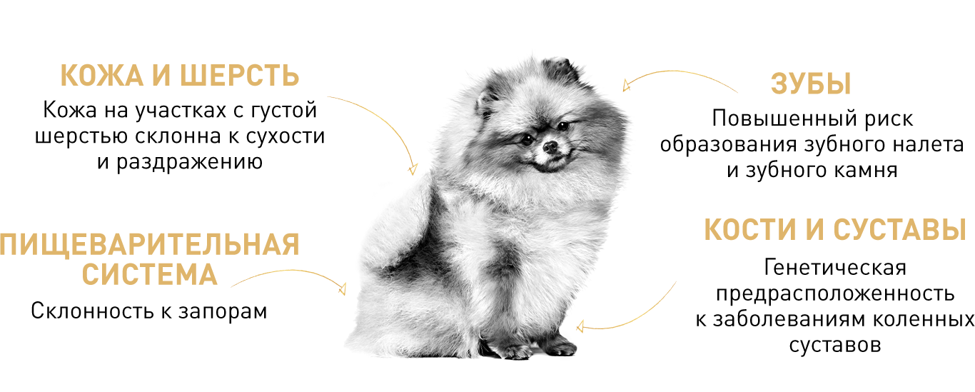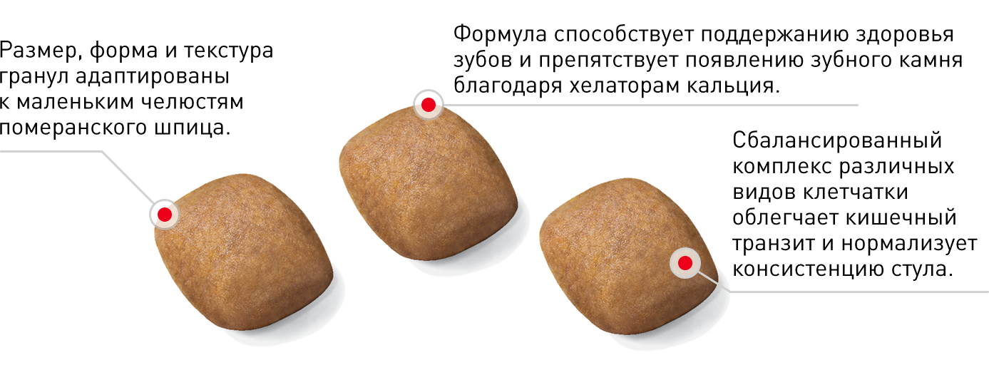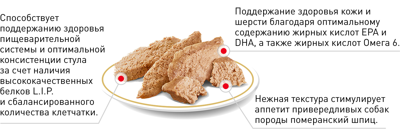 Нежная текстура стимулирует аппетит привередливых собак породы Померанский шпиц.