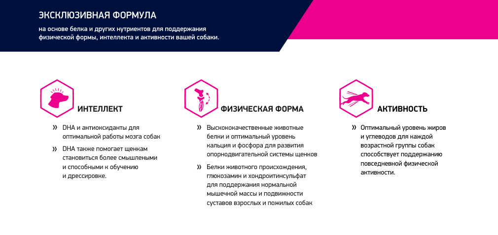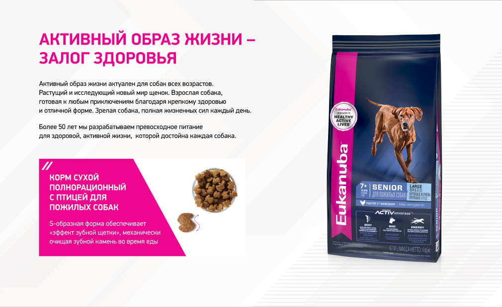 Высококачественные животные белки в сочетании с увеличенным более чем на 50%* содержанием глюкозамина и хондроитинсульфата помогают поддерживать оптимальную мышечную массу и работу суставов.