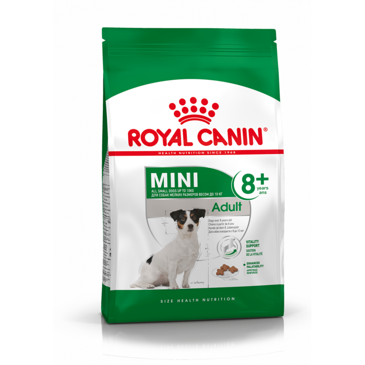 Продукт ROYAL CANIN® Mini Adult 8+ для собак мелких пород в возрасте от 8 лет (весом до 10 кг), разработан с учетом особых потребностей взрослой собаки в питательных веществах.