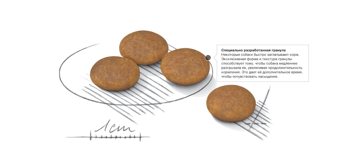 Крокеты X-small Light Weight Care отличаются от Mini, Medium и Maxi, сделанных в форме «пончика», благодаря чему собака медленнее разгрызает корм и ест дольше, что способствует насыщению. У мелких собак маленькие челюсти, поэтому для них невозможно использовать такую форму крокет, иначе они окажутся слишком большими.