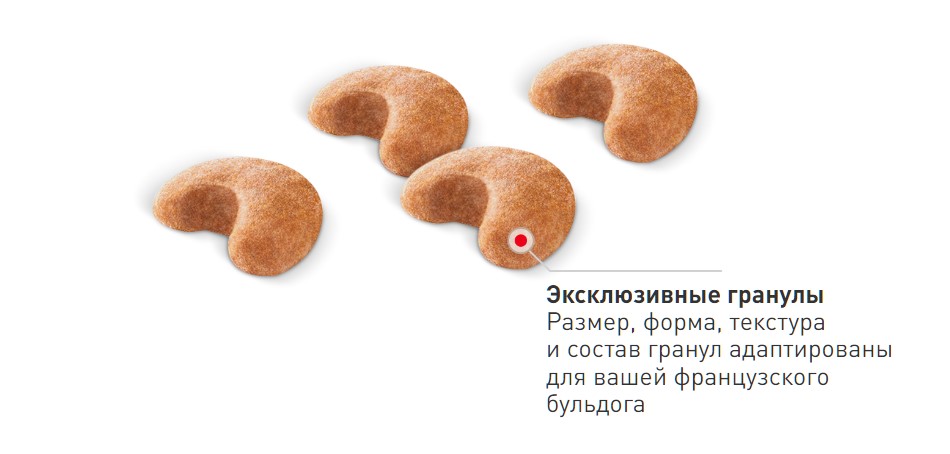 4) Эксклюзивная форма крокет: специально для челюстей собак брахицефальных пород: Крокеты особой формы для собак породы французский бульдог облегчают захват и стимулируют тщательное разгрызание