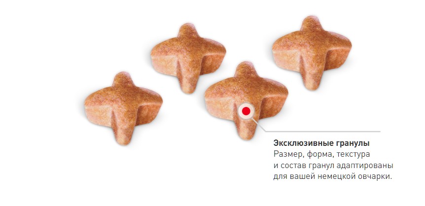 4) Эксклюзивная форма крокет: Форма, размер, текстура и состав крокет специально разработаны для собак породы немецкая овчарка.
