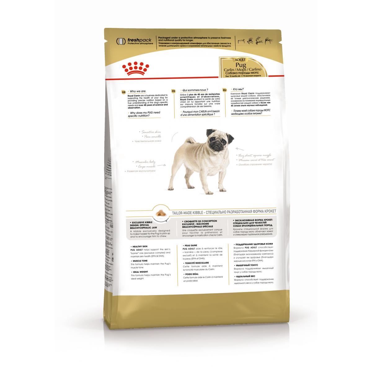 Корм ROYAL CANIN® Pug Adult, предназначенный для собак породы мопс старше 10 месяцев, специально разработан с учетом уникальных потребностей вашей взрослой собаки в питательных веществах.