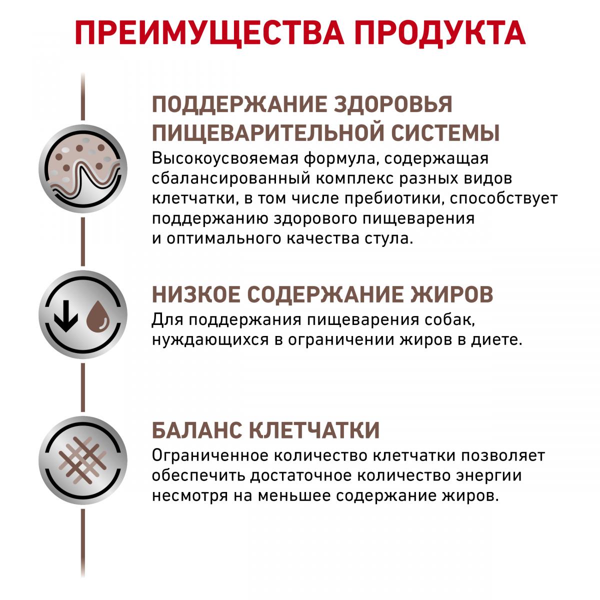 НИЗКОЕ СОДЕРЖАНИЕ ЖИРОВ Для поддержания пищеварения собак, нуждающихся в ограничении жиров в диете.