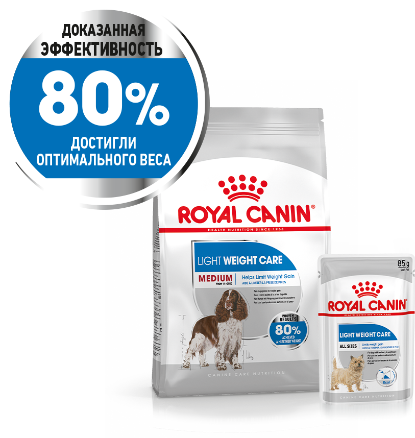 Корм ROYAL CANIN® Light Weight Care Medium со сниженным содержанием жира разработан специально для того, чтобы помочь вашей собаке поддерживать идеальный вес.
