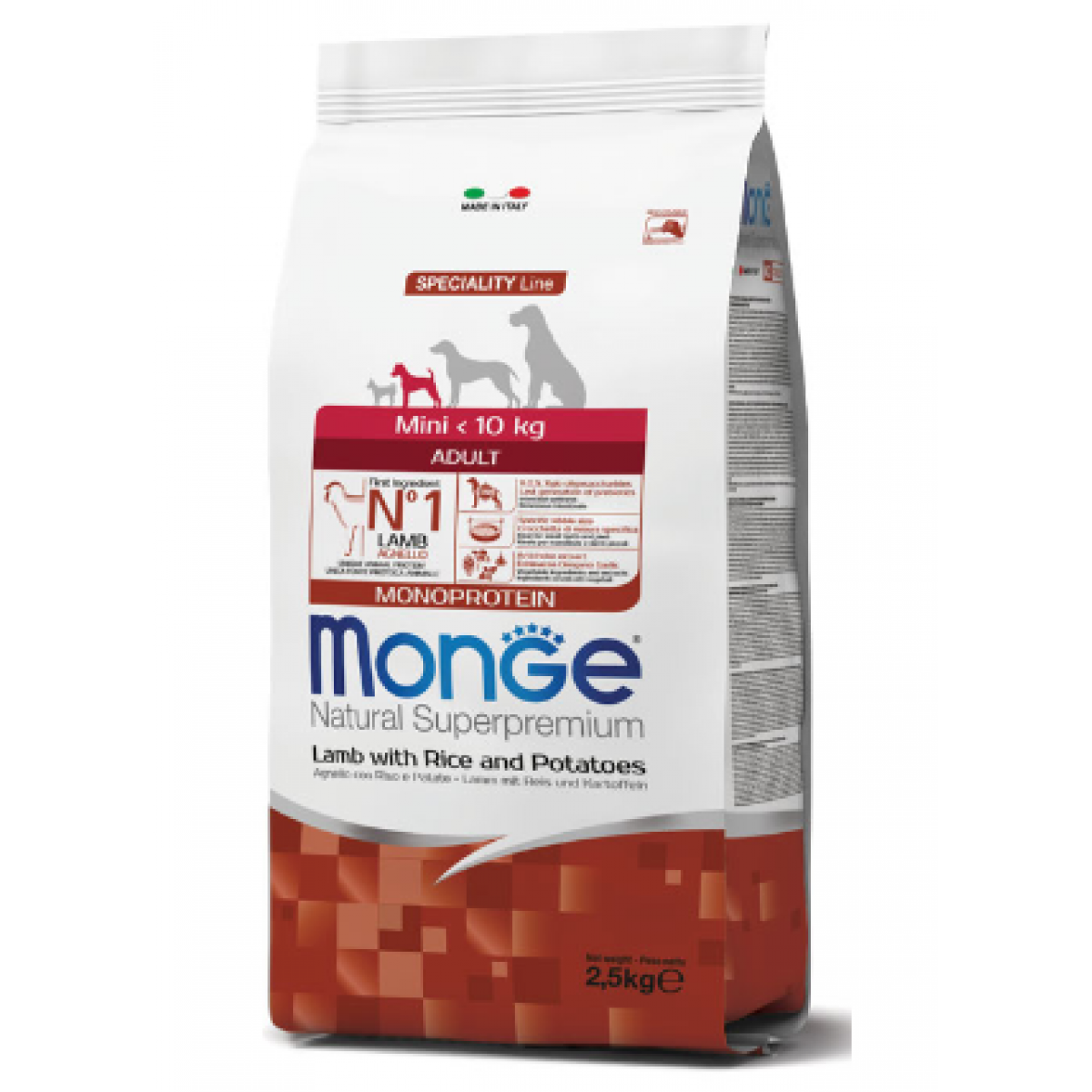 MONGE SPECIALITY LINE ALL BREEDS ADULT LAMB, RICE AND POTATOES - это полноценный сбалансированный рацион для взрослых собак всех пород. Оптимален для собак, склонных к аллергическим воспалительным реакциям.